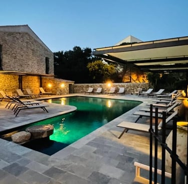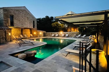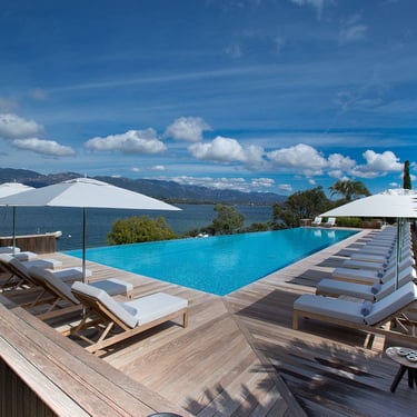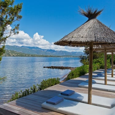 Situated in serene Porto-Vecchio, hotel Casadelmar is a 5-star retreat blending minimalist architecture with lush Mediterranean gardens and stunning bay views. Architecturally, Casadelmar contemporary wood-and-glass design and tranquil gardens are seamlessly integrated into the hillside, enveloped by olive, cypress, myrtle and rockrose. The Michelin-starred restaurant, Le Casadelmar, presents creative Mediterranean cuisine (sea bass/spider crab cannelloni is a must-try).