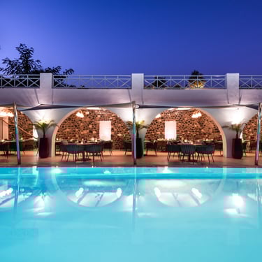 Kastelli Resort is considered an exotic holiday destination due to its prime location in Santorini (Greece), its luxury offerings, and serene ambiance. The resort is also located within walking distance (about 7 minutes’ walk) of Kamari Beach, one of Santorini's most famous black sand beaches. Kastelli Resort offers easy access to historical sites like Ancient Thera and iconic views of the Aegean Sea. The resort is surrounded by volcanic cliffs, elegant Cycladic whitewashed architecture with modern comforts, and deep-blue waters—classic elements of Santorini's exotic charm.