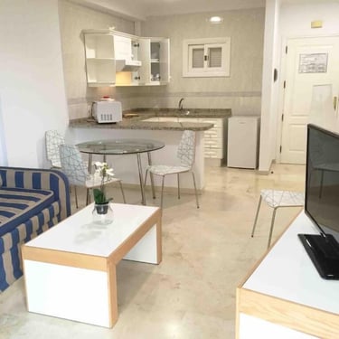 Situated in Puerto de la Cruz on a volcanic coastline, the Bahia Playa apartments is built around subtropical gardens, with four outdoor pools—including a heated rooftop pool with panoramic views over the sea and even Mount Teide in the distance. The Bahia Playa resort is designed with guests' wellness and relaxation in mind, with a fitness centre, yoga and Pilates classes, sauna, Hammam, spa treatments, sports including tennis, mini golf, and aerobics. Some of the local landmarks include Loro Park (7 minutes walk away), Plaza del Charco (14 minutes walk away), and Taoro Park (14 minutes walk away). The nearest airport is Tenerife (TFS-Tenerife South) just over an hour from the resort.