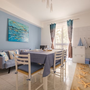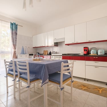 Located in the Aeolian Islands, Sicily, Italy, the holiday home "La Casa Di Wioletta" is situated in Barcellona and overlooks the nearby sea. The 120 m² property consists of a living room with a sofa bed for 2 people with a French orthopaedic mattress, a fully-equipped kitchen, 3 bedrooms (one with orthoptic mattress) and 1 bathroom and can accommodate 8 people. Among the on-site amenities are high-speed Wi-Fi (suitable for video calls), a dedicated workspace for home office, a smart TV with streaming services, air conditioning, a fan, a washing machine, a capsule coffee machine and a selection of children's books and toys. A private gym and gym equipment are available on the property. A baby cot is also provided.